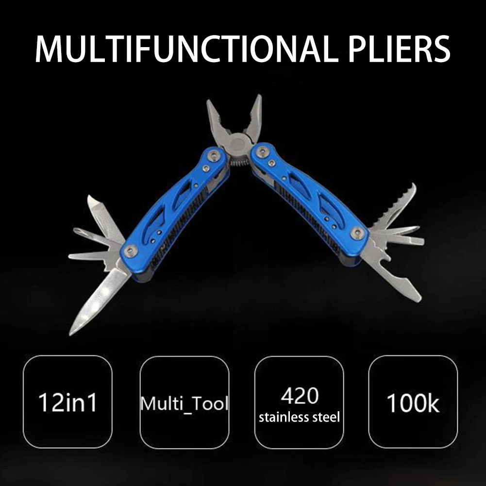 12 in 1 Outdoor Camping Survival Tools Portable Mini Multitool 420 Stainless Steel Cutter Pliers Knife Screwdriver Bottle Opener