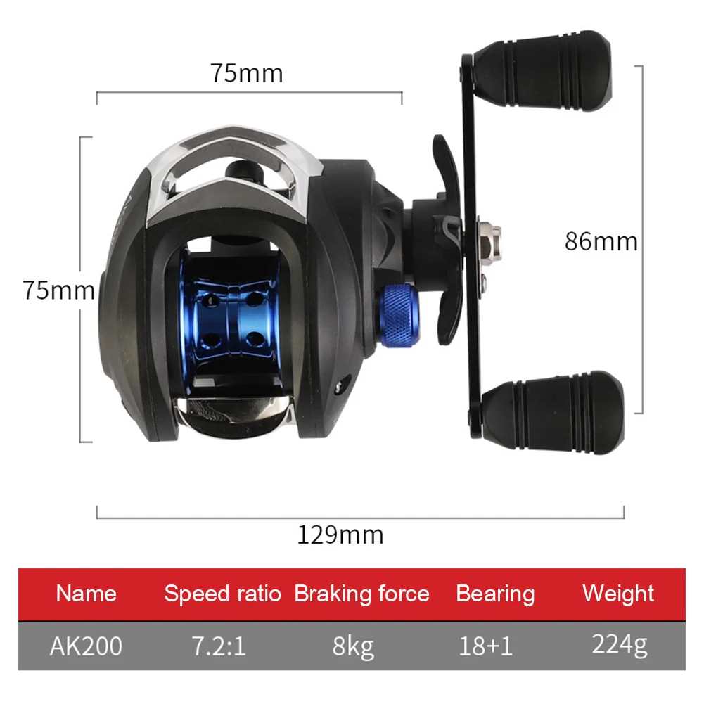 7.2/1 All Metal Low Profile Baitcasting Fishing Reel 8kg Dragging Force Anti-Tangling Lure Baitcasting Fishing Reel Fishing Tackle Accessories