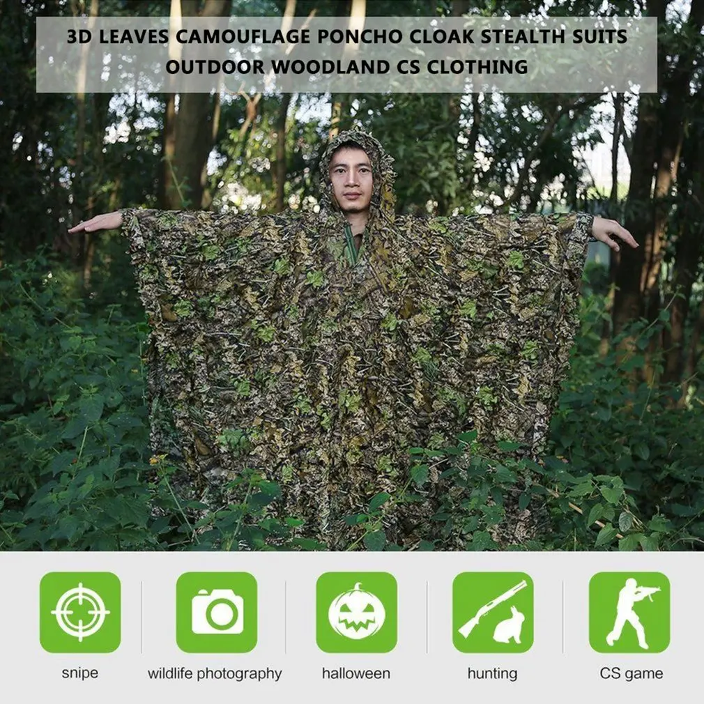 Be invisible in the woods with 3D woodland camouflage leafy design, makes hunting more easy and funny.