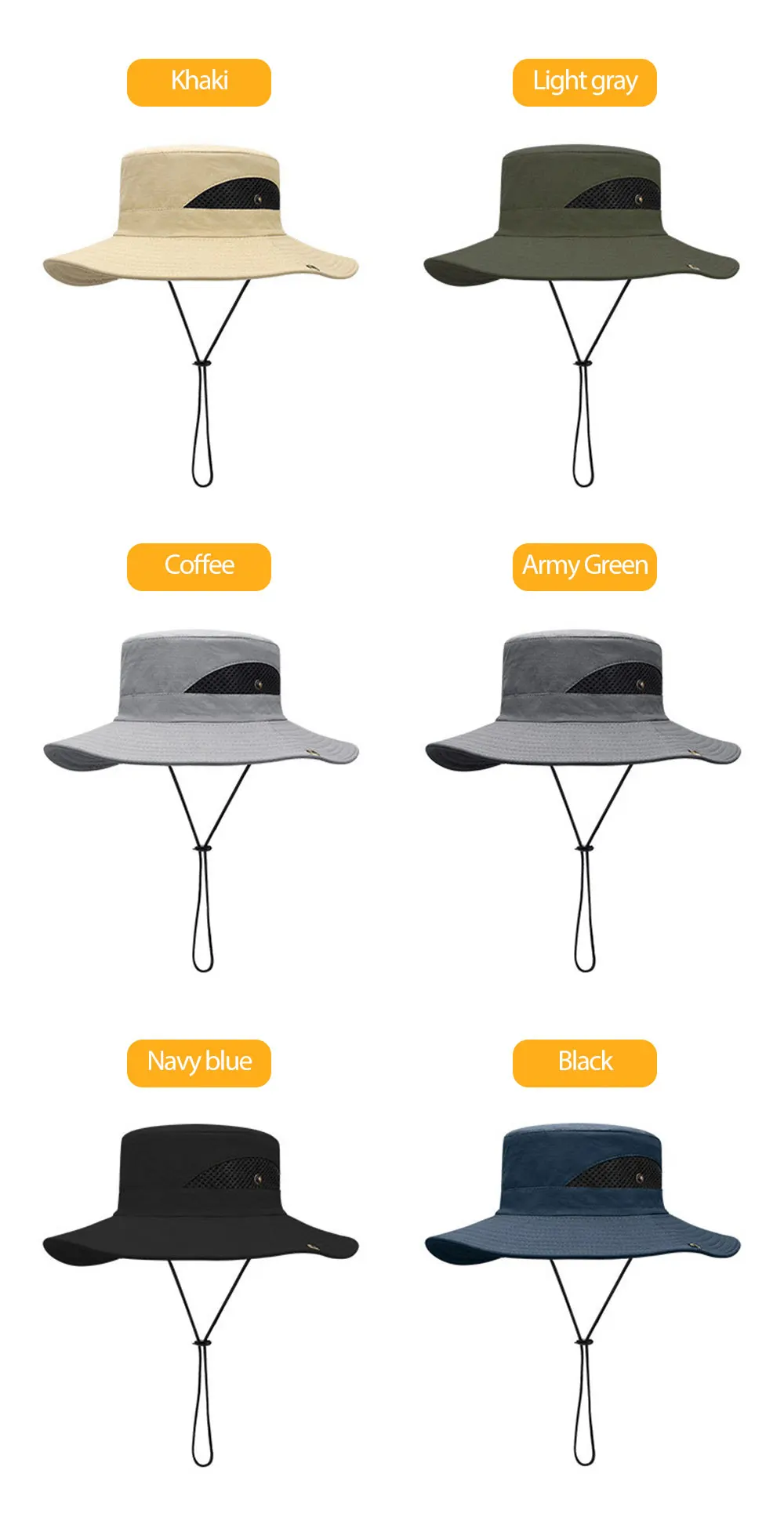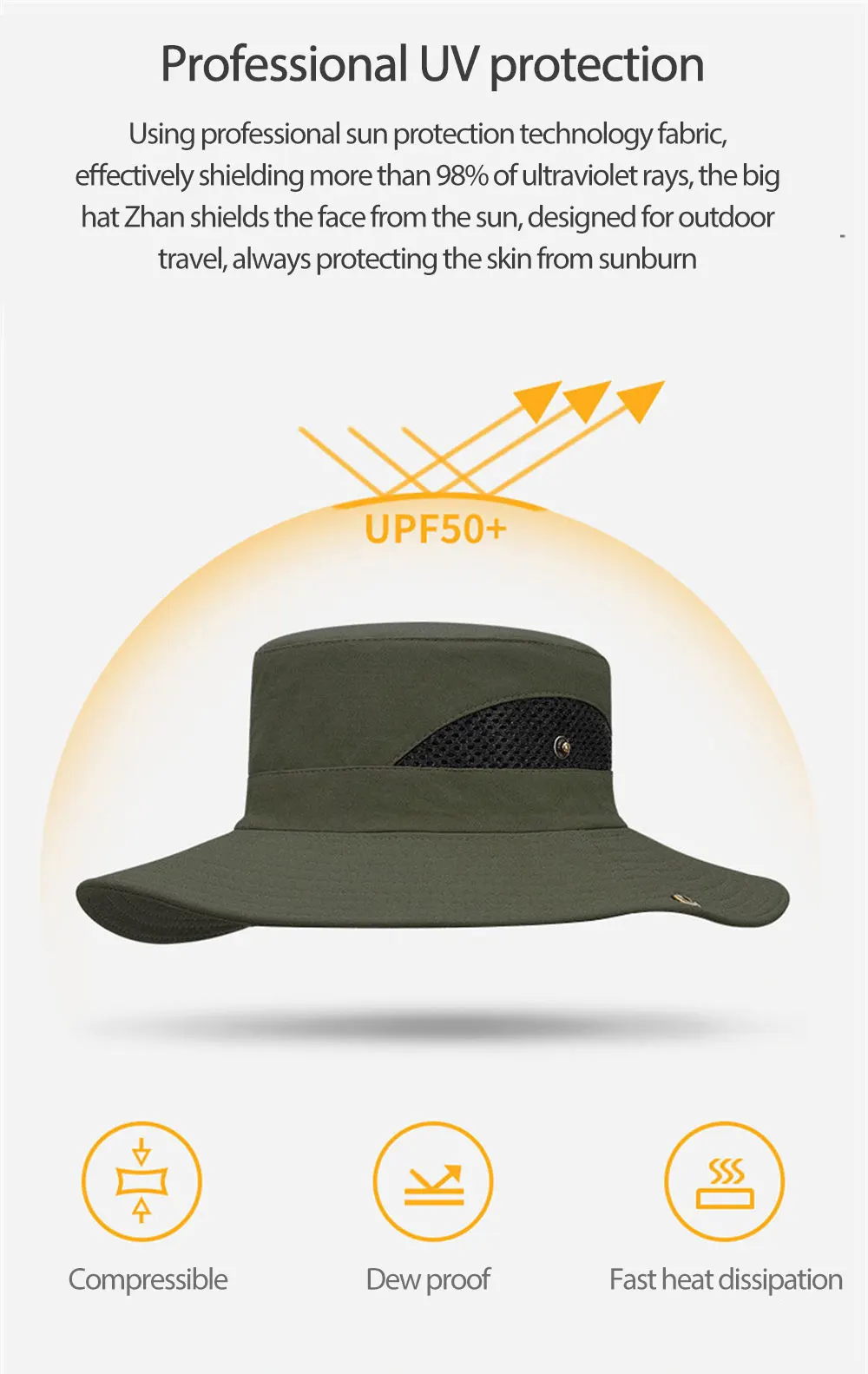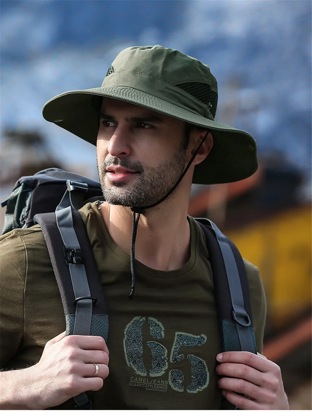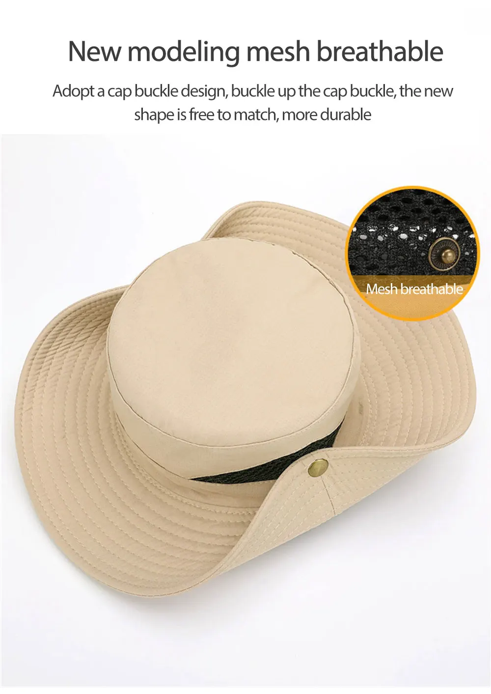 Fishing Hat Wide Brim Man Breathable Mesh Outdoor Fishing Cap Beach Hats Camouflage Sun UV Protection Shade Hat Summer 60CM