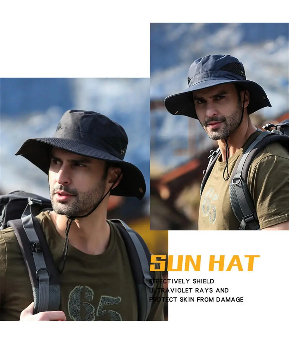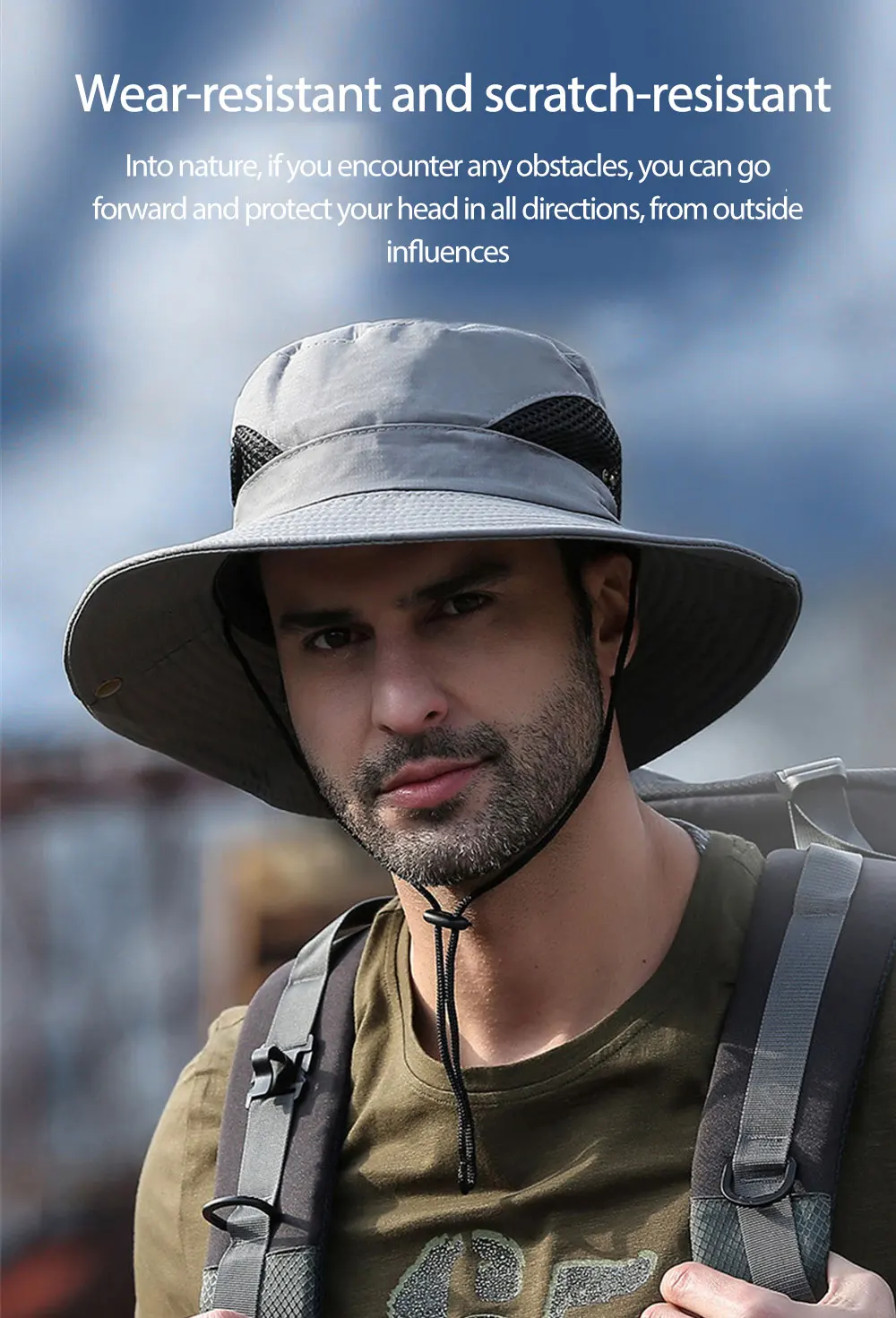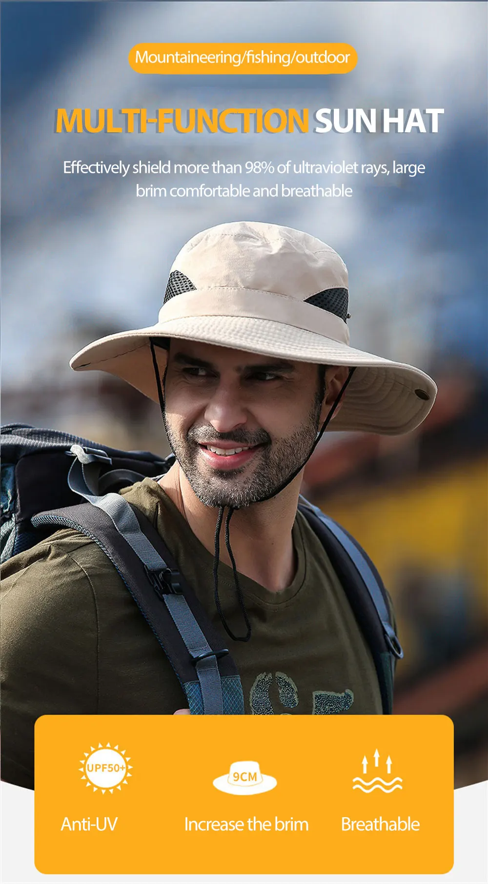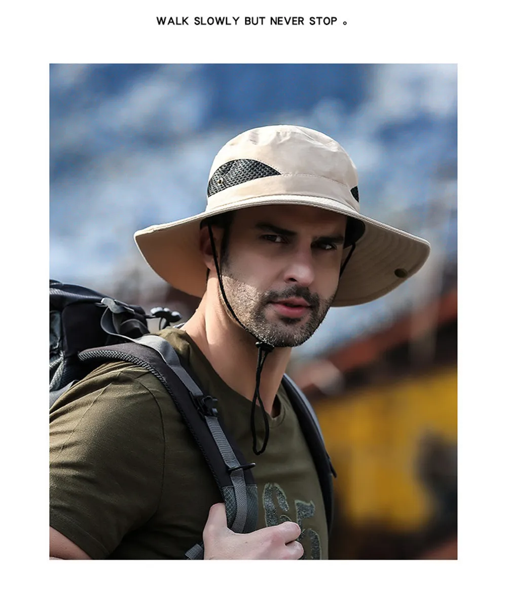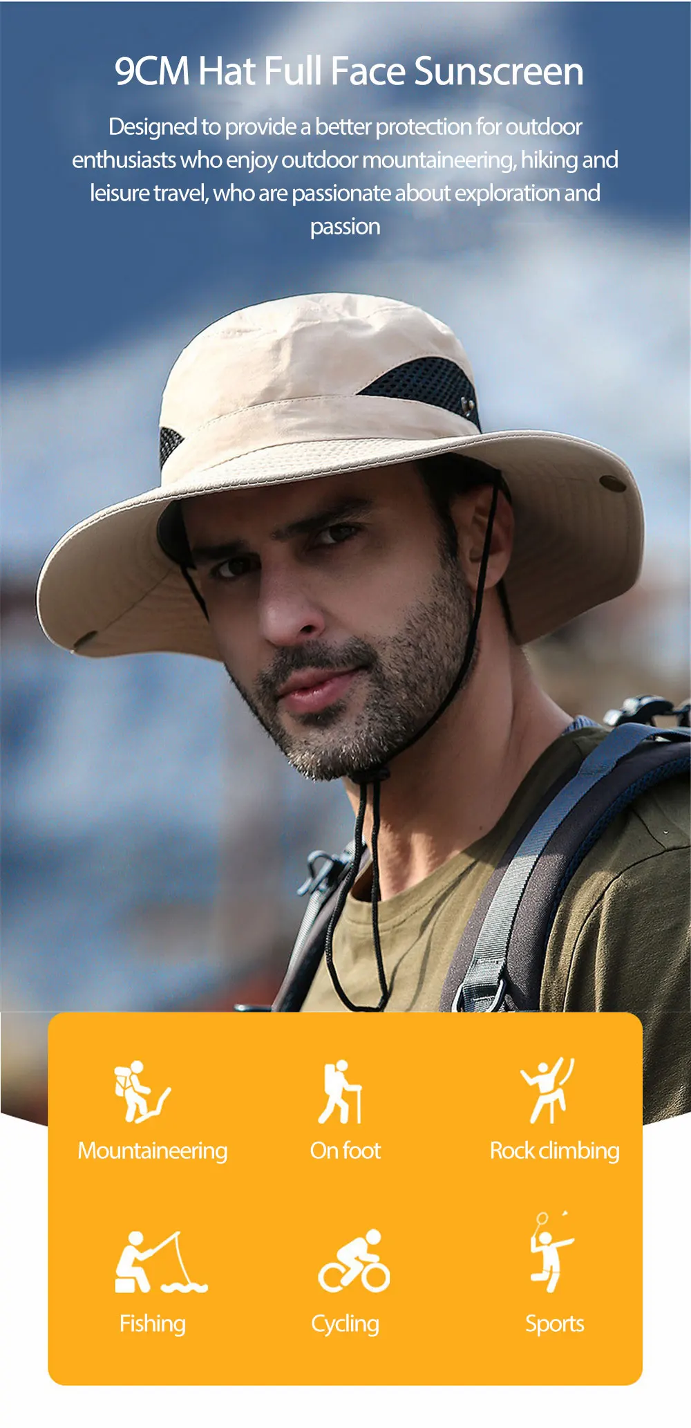 Fishing Hat Wide Brim Man Breathable Mesh Outdoor Fishing Cap Beach Hats Camouflage Sun UV Protection Shade Hat Summer 60CM