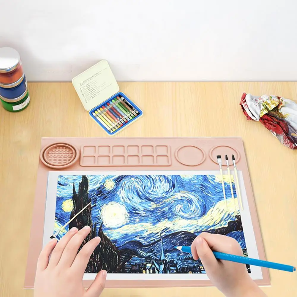 The Silicone Art Mat can be used for classes or home studios, suitable for watercolor, gouache and resin stencils.