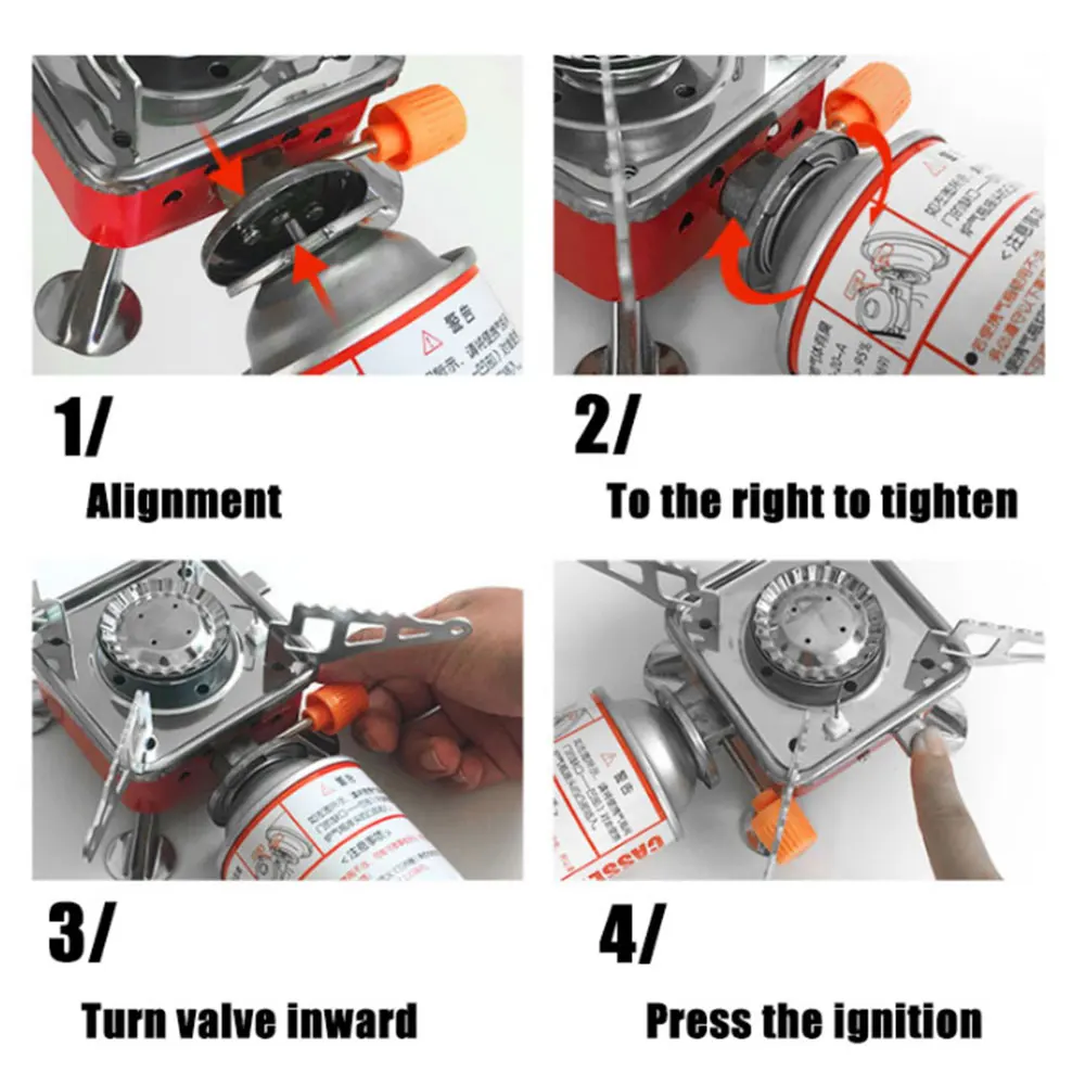 Setting up the stove is a simple process – just connect the gas plug, open the gas valve, press the igniter, and you’re ready to cook. You can easily adjust the gas flow by rotating the valve counterclockwise to increase it or clockwise to decrease it. Crafted from stainless steel, iron, and chrome plating, our stove is built to last, ensuring long-lasting performance.