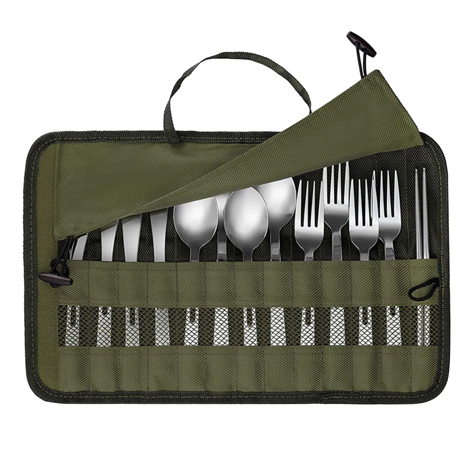 - Convenient Storage: This cutlery bag offers an organized storage solution for your outdoor dining utensils, including forks, spoons, knives, and even chopsticks.