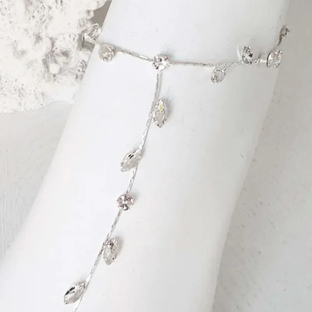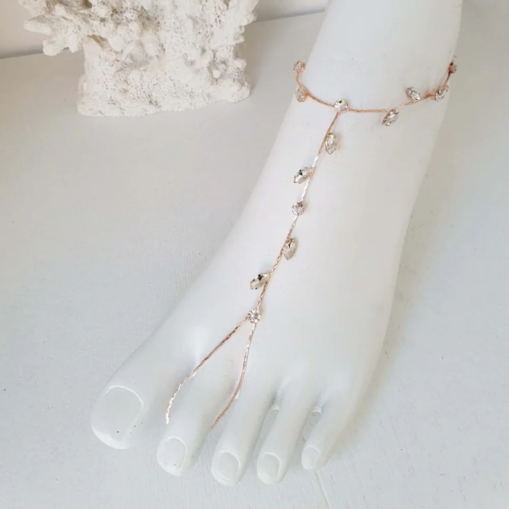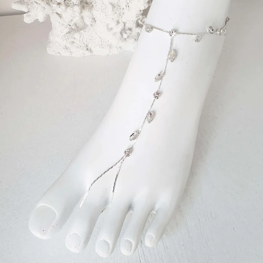 This boho-inspired leaf-shaped ankle chain is a classic foot jewelry accessory