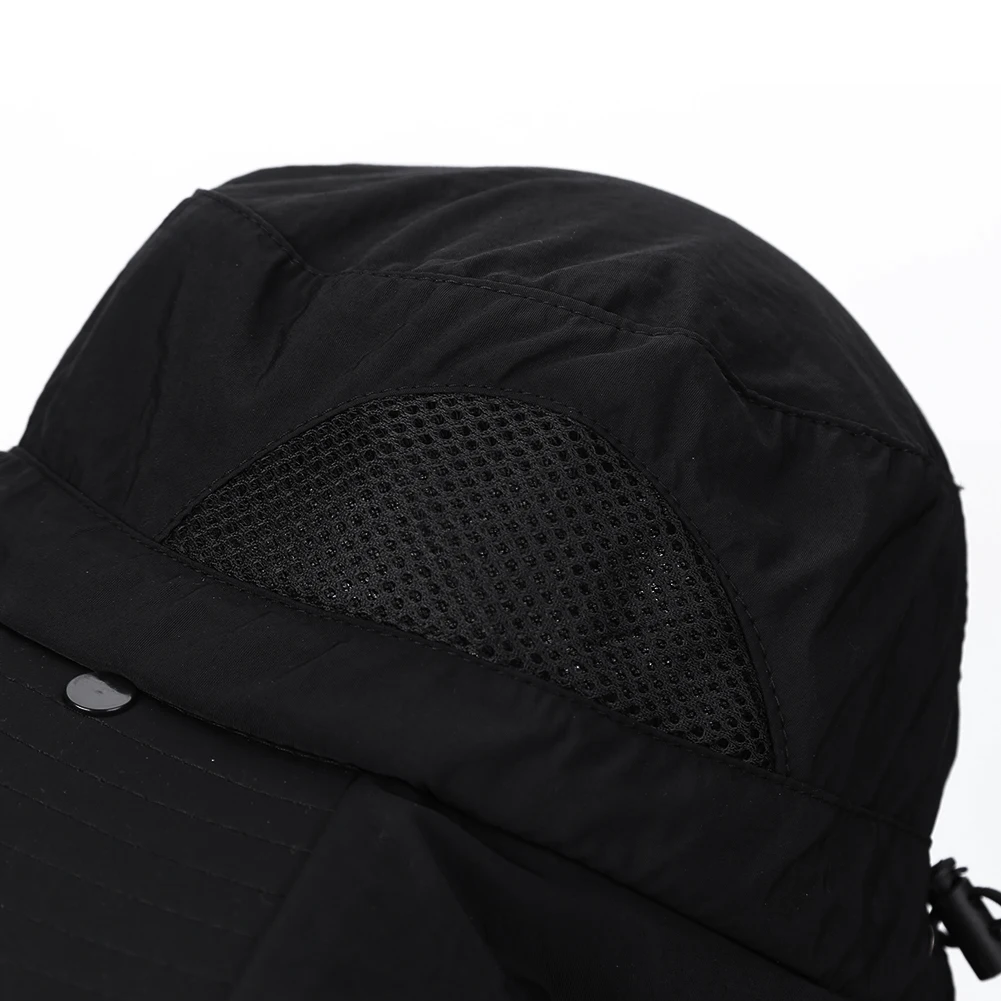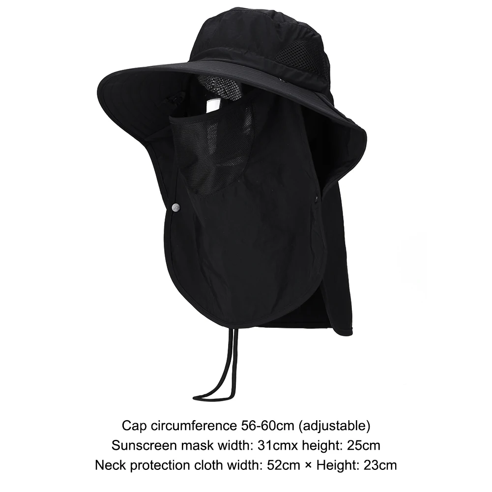 Adjustable Wide Brim Boonie Sun Hat Face Mask Women Men Outdoor Sports Sun Protector Fishing Hiking Hunting Training Breathable Bucket Cap